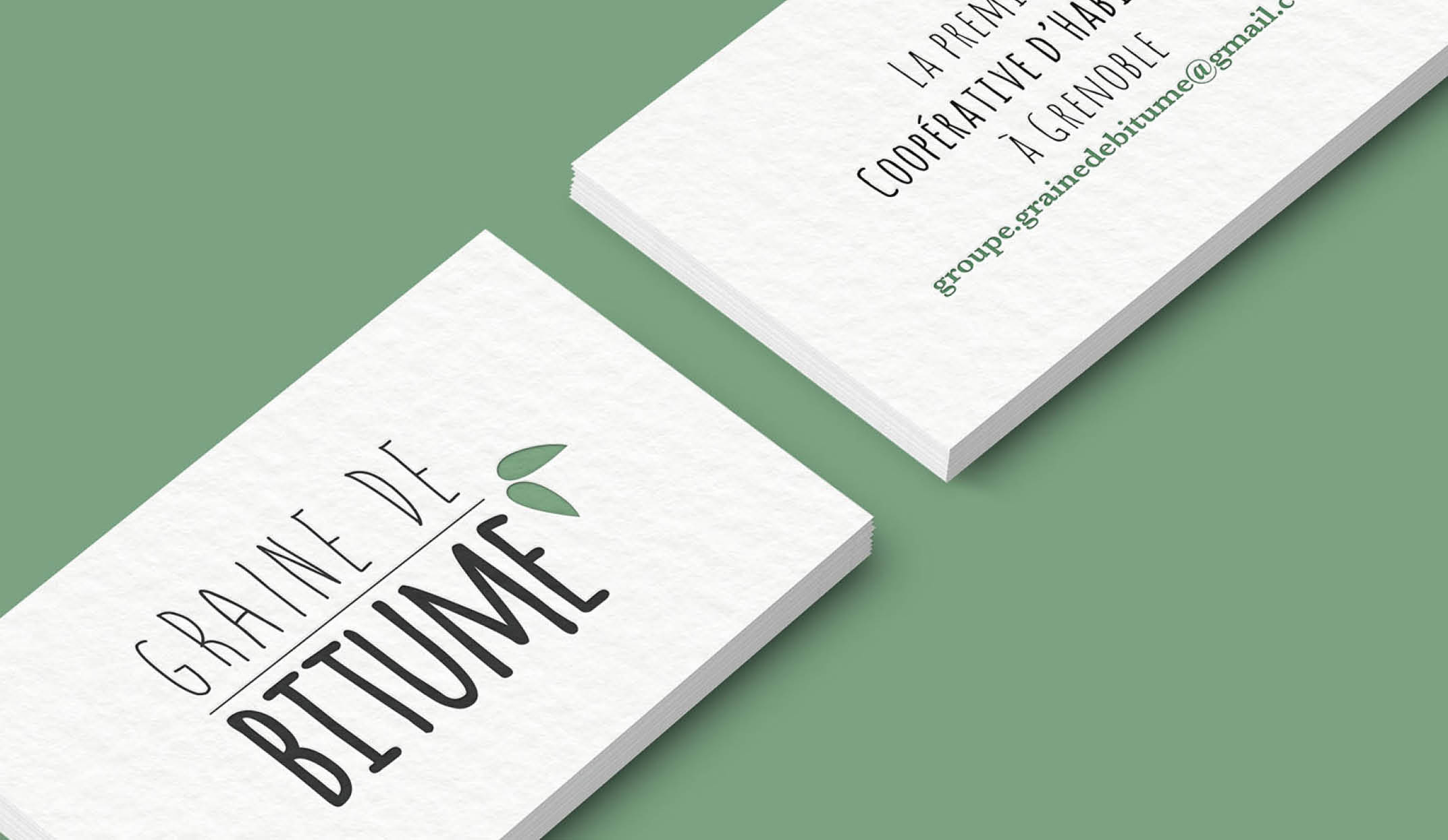 Graine de Bitume est un groupe d’habitants qui a pour projet de construire un immeuble d’habitat participatif. Leur identité visuelle devait être à leur image, fraîche, naturelle et un peu décalée.
